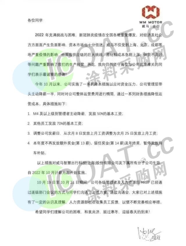 威馬汽車(chē)被爆出停工停產(chǎn)、欠薪裁員等情況后,又被曝出多地4S店關(guān)門(mén)。而后威馬汽車(chē)新增一則股權(quán)凍結(jié)信息,凍結(jié)股權(quán)數(shù)額約 40.4 億元人民幣,凍結(jié)期限自 2023 年 3 月 14 日至 2026年3月13日。而在此前,威馬汽車(chē)高管薪資縮減50%,普通員工薪資按照70%發(fā)放,連年終獎(jiǎng)也被取消了。