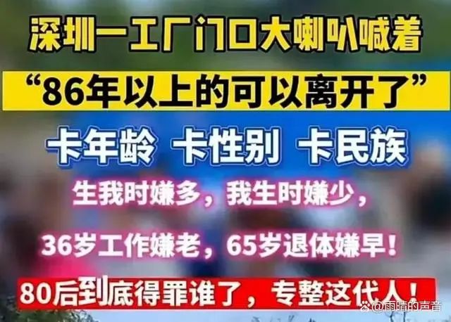 制造業(yè)工廠(chǎng)的冷淡也影響到了歷年春節(jié)后金三銀四的招工大戲,廣東深圳某工廠(chǎng)表示招工不招86年以上(1986年以前出生)的員工,門(mén)口還用大喇叭高喊著“86年以上的可以離開(kāi)了,不用排隊(duì)了”。