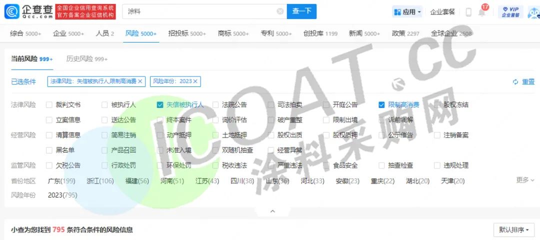 據企查查平臺數據,有失信信息的涂料企業就超過5800家,化工企業超過66000家。