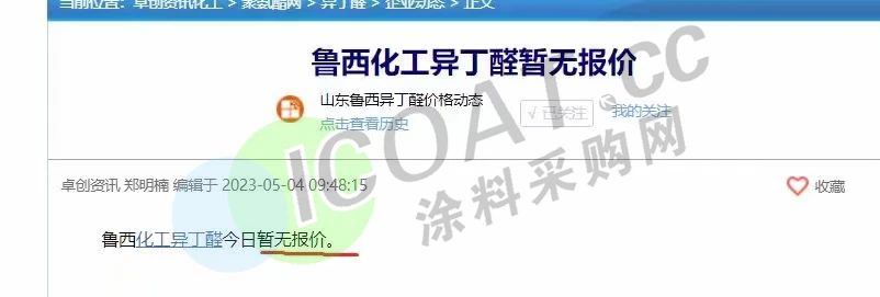 魯西化工的事故對于異丁醛及下游產業鏈也造成了一定的供給焦慮。5月4日國內異丁醛市場價格大幅上漲,日漲666.67元/噸,漲幅8.91%。部分廠家停車檢修,異丁醛供應趨緊,現貨流通緊張,大廠上調報價。
