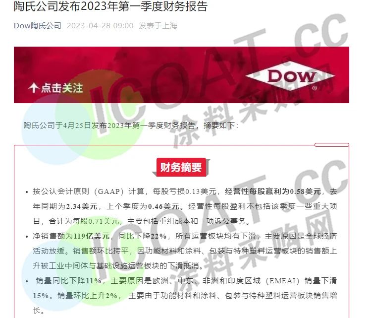 艾仕得首席執行官兼總裁表示,正在采取行動加強艾仕得的長期盈利能力,未來看起來一片光明。在外資涂料巨頭艾仕得取得亮眼成績的同時,眾多外資涂料、化工企業也發布了一季度的成績單,但數據方面卻是冰火兩重天。