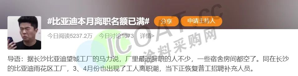近日,網傳比亞迪湖南省長沙市望城區、雨花區的兩座工廠遭遇“離職潮”,多名員工還得到“本月離職名額已滿”的回復。相關負責人回應稱,“經核實,‘離職名額已滿’、‘排隊辭職’等說法與事實不符。”