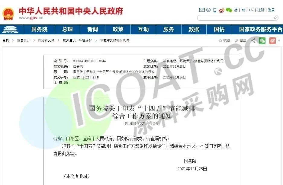 2021年12月,國務院印發《“十四五”節能減排綜合工作方案》,在“揮發性有機物綜合整治工程”方面,要求以工業涂裝、包裝印刷等行業為重點,推動使用低揮發性有機物含量的涂料。到2025年,溶劑型工業涂料降低20%。