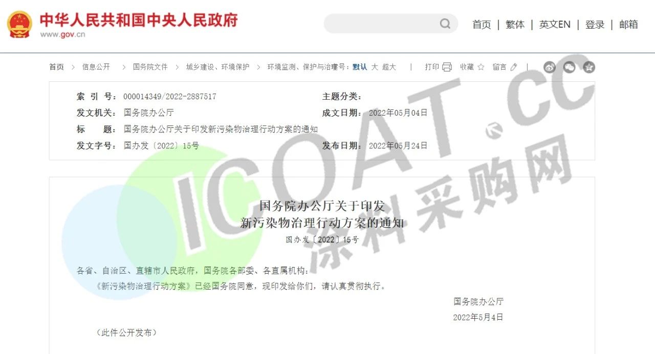 2022年5月,國務院印發《新污染物治理行動方案》,圍繞國內外廣泛關注的新污染物,提出了管控目標和行動舉措。要求加快有毒有害化學品替代,強化源頭管控。嚴格落實涂料等產品VOCs含量限值標準,大力推進低(無)VOCs含量原輔材料替代。