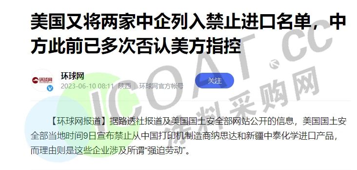 近日,又一化工巨頭深陷危機。美國國土安全部宣布禁止從中國打印機制造商納思達和新疆中泰化學進口產品,該禁令將從6月12日起開始實施。美國將上述兩家中企被列入所謂“維吾爾強迫勞動預防法”的實體名單中,這些企業及其子公司生產的商品將被限制進入美國。