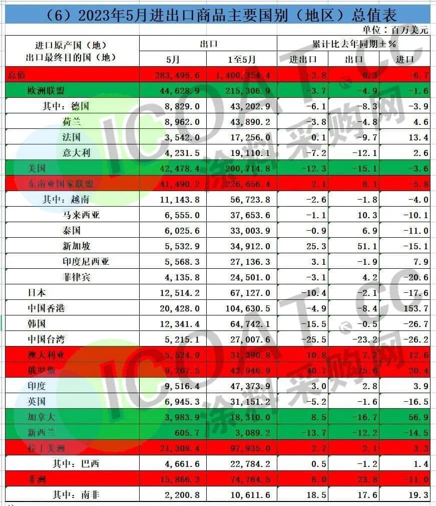并不樂(lè)觀的數(shù)據(jù)背后,是全球經(jīng)濟(jì)出現(xiàn)了衰退,導(dǎo)致需求越來(lái)越少,歐美等地區(qū)對(duì)于我國(guó)的訂單更是幾近腰斬。1-5月份的累計(jì)情況,對(duì)美國(guó)出口同比下滑15.1%,對(duì)歐洲同比下滑4.9%,對(duì)加拿大、新西蘭都是同樣的問(wèn)題。
