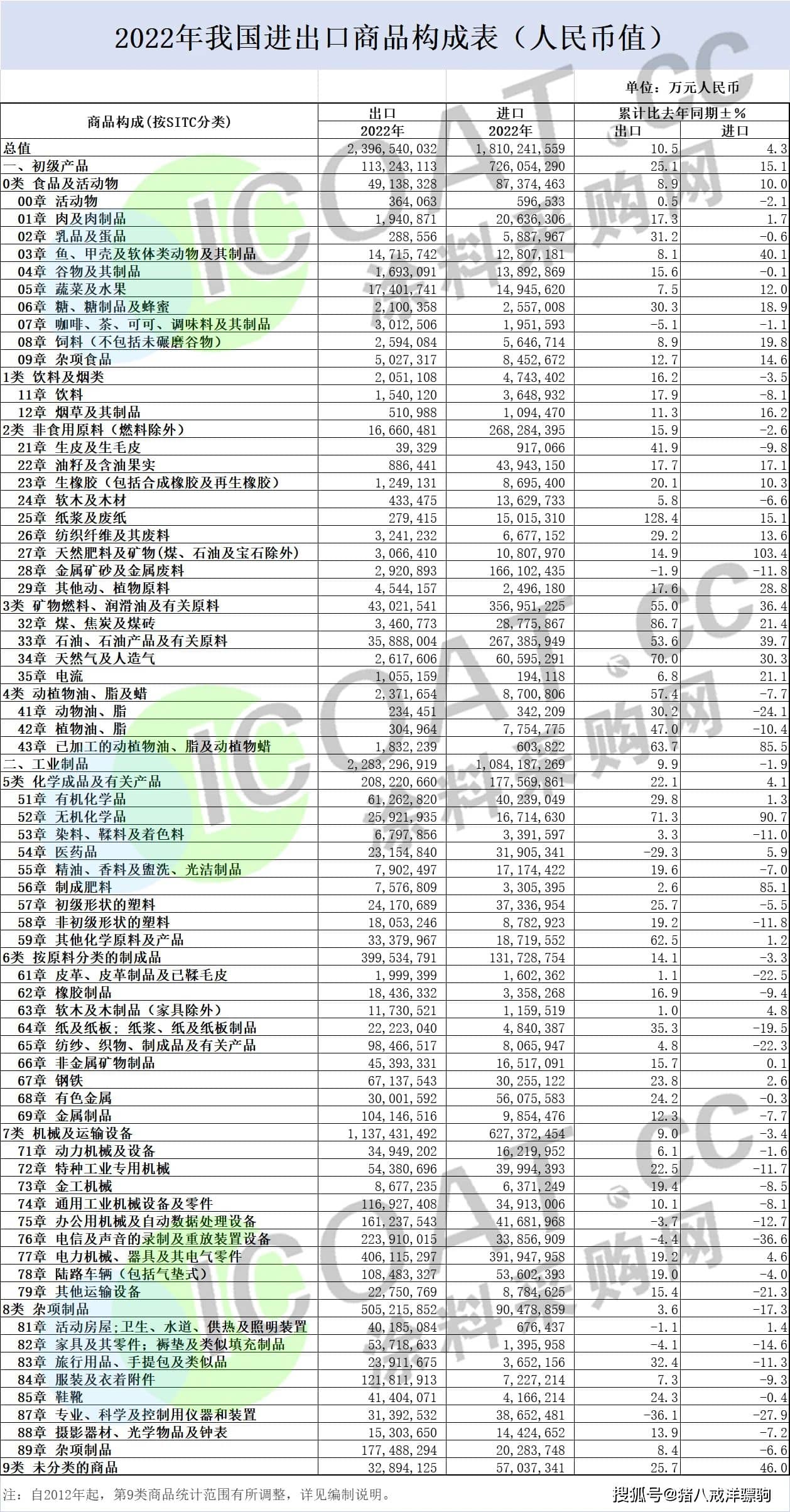 外貿(mào)市場(chǎng)回暖并不如預(yù)期,我國(guó)出口產(chǎn)品也受到波及。2022年我國(guó)出口商品最多的是“工業(yè)制品”。其中,機(jī)械及運(yùn)輸設(shè)備出口22.8萬(wàn)億元、雜項(xiàng)制品出口5.1萬(wàn)億元、按原料分類的制成品出口4萬(wàn)億元、化學(xué)成品及有關(guān)產(chǎn)品出口2.1萬(wàn)億元、食品及活動(dòng)物出口4914億元。