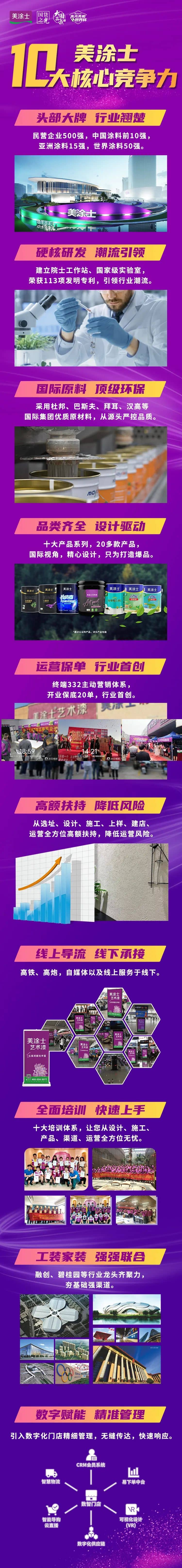 在加盟幫扶方面,美涂士擁有專業精英營銷幫扶團隊,構建全域渠道營銷體系,以開店幫扶、運營幫扶、活動幫扶、商學院培訓、廣告投放、設計幫扶等系統化幫扶體系,全面幫助新商老商快速成長,迅速提升門店運營能力,通過可復制性的大商制造案例,實現輕松經營,穩走財富之道。