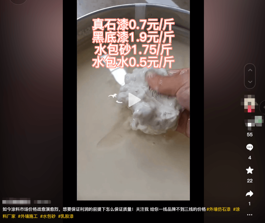 除此之外,在涂料行業還存在反向“價格戰”。盡管公開報價并不低,但私下卻“有的商量”。你給我帶來客戶,我給你“返利”,最終低價產品被包裝成高價品,坑的是下游客戶。低得離譜的價格,背后難免是偷工減料,還哪有心思提高質量和售后服務呢?