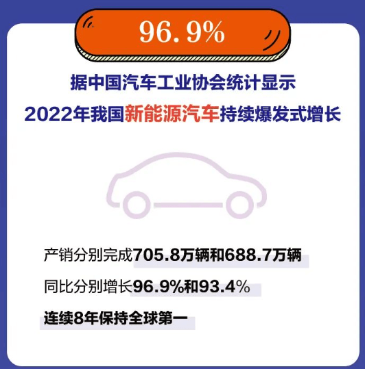 新能源汽車的發(fā)展速度相信大家有目共睹,據(jù)工信部副部長辛國斌介紹,2022年我國新能源汽車產(chǎn)銷實(shí)現(xiàn)705.8萬輛和688.7萬輛,同比分別增長96.9%和93.4%,市場占有率達(dá)到25.6%,我國新能源汽車的產(chǎn)銷連續(xù)8年位居世界第一。
