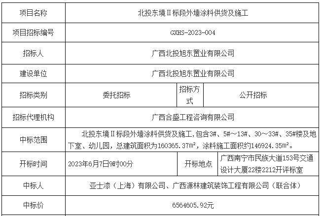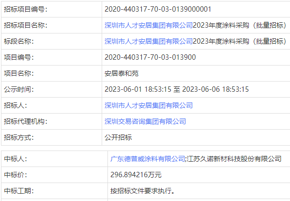 中標深圳市人才安居集團有限公司2023年度涂料采購(批量招標)項目。
