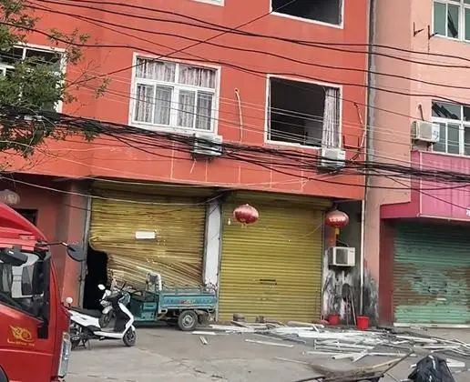 17日白天,有居民在微信群里看見(jiàn)消息:德邦化工大門(mén)后面還有一個(gè)村子,村里面有門(mén)店房,門(mén)店房的卷閘門(mén)都變形了,房屋也開(kāi)裂了。