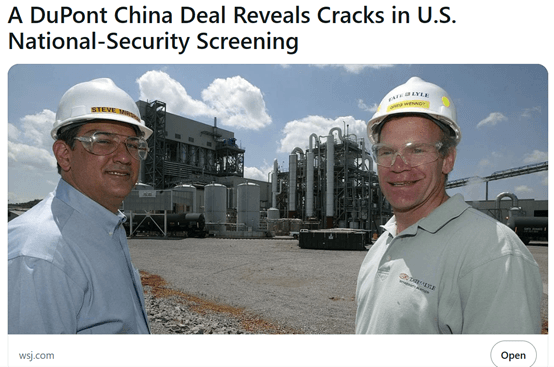 美國情報部門評估稱工藝所產生的副產品有可能作為尖端武器燃料的高質量原材料。為了防止這些技術泄露給中國。CFIUS與交易各方達成了復雜的國家安全協議,不讓華峰集團掌握這一材料的生產工藝。