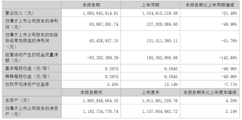 近日,安納達(或稱公司)發布2023年半年度報告,報告期內,公司實現營業收入10.64億元,同比下降21.48%。實現歸屬于上市公司股東的凈利潤6396.71萬元,同比下降49.96%。實現歸屬于上市公司股東的扣除非經常性損益的凈利潤6343.89萬元,同比下降51.76%。基本每股收益為0.2975元。