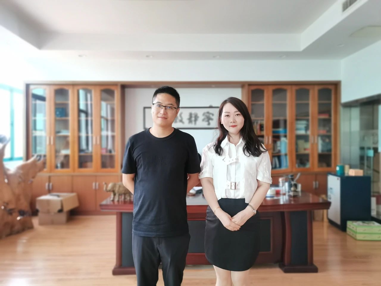 龍鑫智能總經理莫銘偉(左)與涂料采購網江雪(右)合影