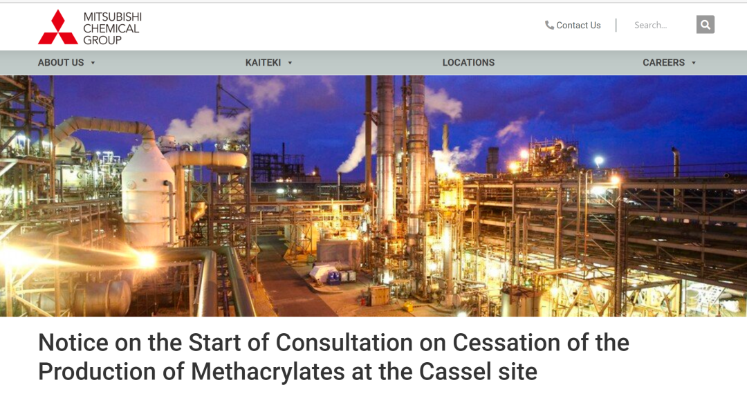 三菱化學表示,公司在Mitsubishi Chemical UK Limited的Cassell工廠MMA(甲基丙烯酸甲酯)停產的前提下,已與員工進行勞資協商。此舉可能導致Cassell工廠所有與甲基丙烯酸酯相關的生產業務的結束,旨在確定恢復長期經濟可持續性的機會的全面審查之后啟動的。