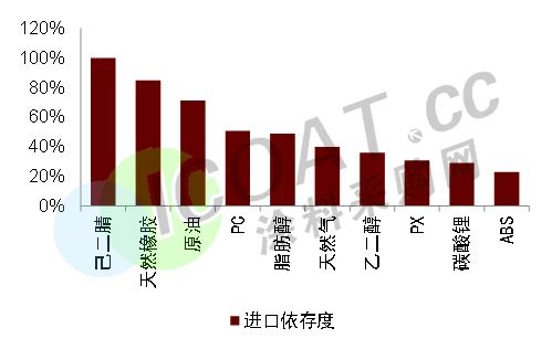 在涂料的細分領域中,也有不少原材料選用的是海外的產(chǎn)品。比如環(huán)氧樹脂行業(yè)的帝斯曼,溶劑行業(yè)的三菱、三井;消泡劑行業(yè)的巴斯夫、日本花王;固化劑行業(yè)的西卡、威士伯;潤濕劑行業(yè)的杜邦、3M;填料行業(yè)的瓦克、羅地亞、德固賽;鈦白粉行業(yè)的科慕、亨斯邁、康諾斯;顏料行業(yè)的拜耳、朗盛等。因為具有很多的技術壁壘,國內的原材料產(chǎn)品性能完全達不到進口產(chǎn)品的效果,很難在國內市場中找到替代品。