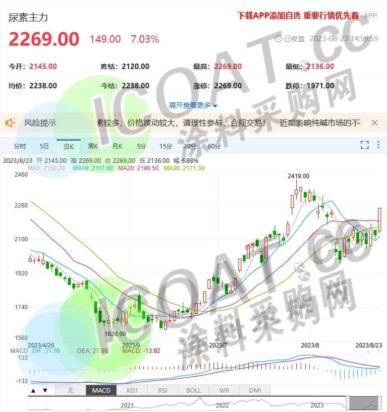 山西地區是除內蒙古以外國內尿素產量最大的地區,其尿素年產能為867萬噸,約占尿素總產能的12%,其中晉城尿素年產能占山西的65%。受供應端消息提振,尿素期貨強勢上漲。截至23日下午收盤,尿素期貨2310、2311、2312、2401和2402合約均觸及漲停,尿素主力合約漲7.03%至2269元/噸。