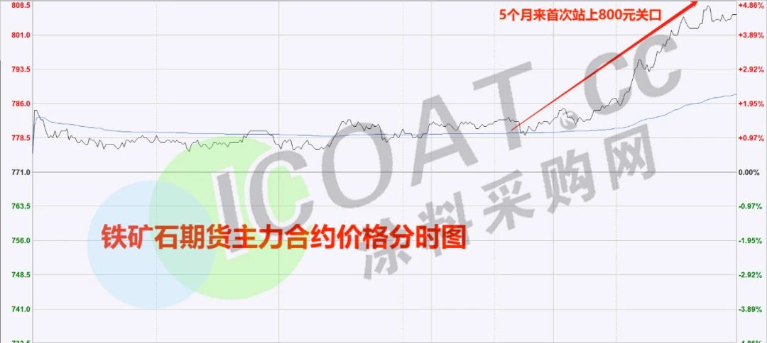 再度站上800元/噸關口,鐵礦石迎來五連陽,8月22日消息,鐵礦石主力合約時隔五個月再度站上800元/噸關口,自8月16日后迎來五連陽,觸及3月16日以來新高807.5元。鐵礦石主力期價最終收盤上漲4.47%,收報805.5元。