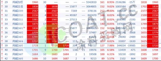 近日安徽德邦化工廠爆炸、金山集團200萬噸新產能產成品不合格、昆侖發投因環保停機等消息不停吊緊市場神經。檢修季疊加剛需去庫市場流動堿有限,市場出現買不到堿的無堿局面。自6月1日至8月21日,純堿期貨2401合約57個交易日漲幅達34.57%。截至8月22日,共有8張合約漲停,包括馬上臨近交割的2309以及較遠的2404合約。