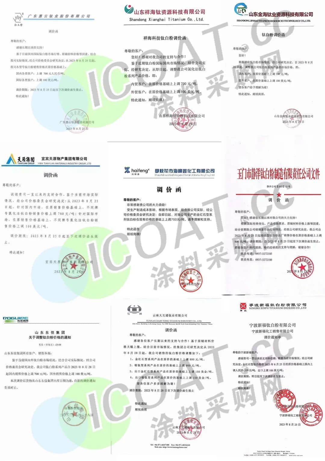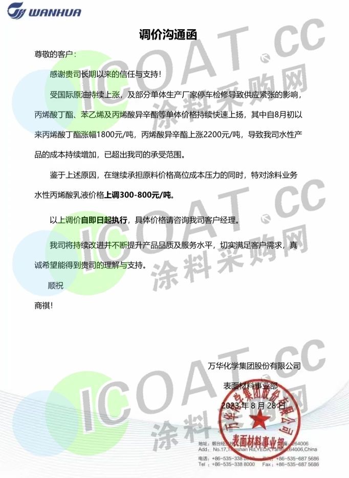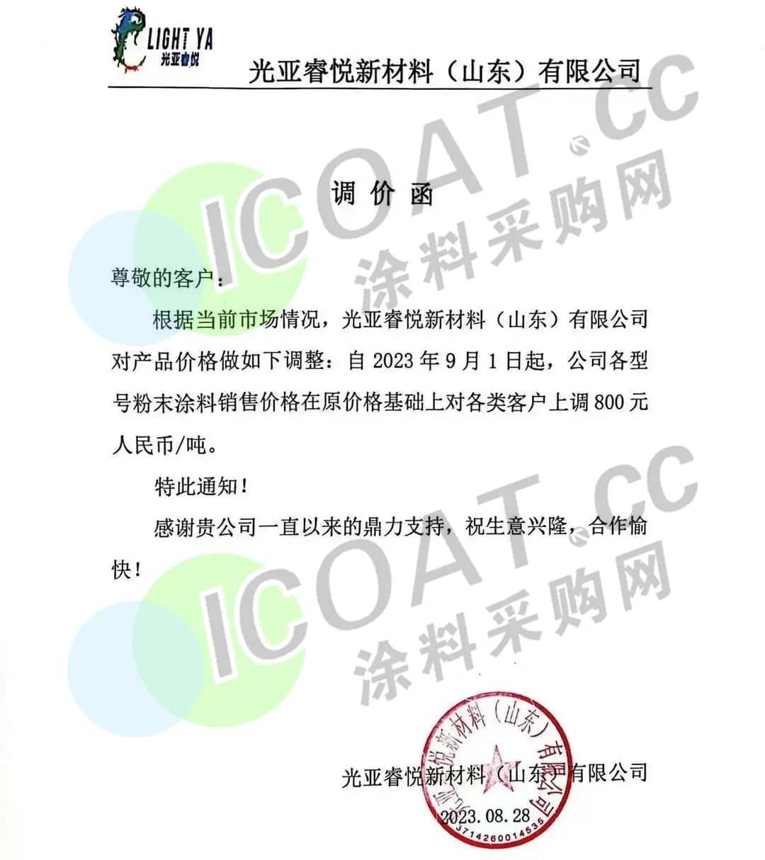 廣東彩泓涂料緊急宣布,自9月1日起,所有粉末在原價的基礎上上調800元/噸。且義正言辭的表示,對應收款未按時支付的客戶將不再供貨,懇請貴公司如期按約回籠資金。