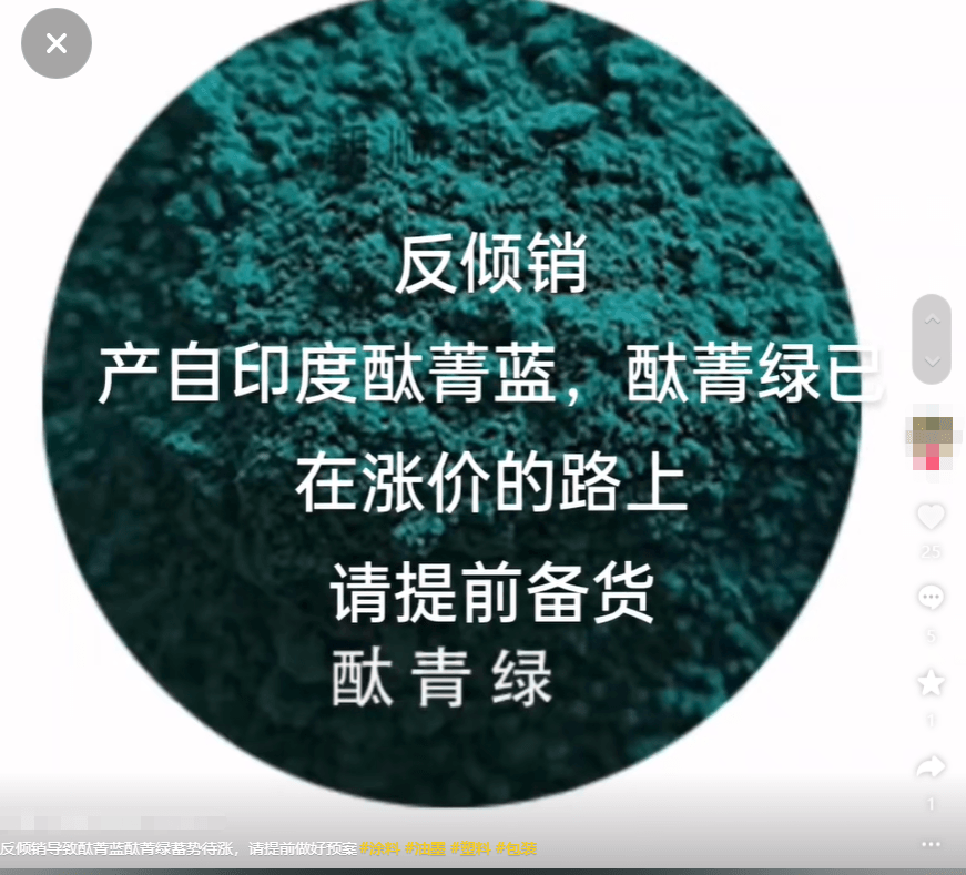 顏料市場,龍頭企業雙樂顏料8月內連發2函,宣布鉬鉻紅產品價格上調2000元/噸,融菁系列價格上調1000元/噸。卡博特表示,炭黑銷售價格上調1500元/噸。某化工廠表示,由于反傾銷,產自印度的酞菁藍、酞菁綠已經在漲價的路上,請提前備貨。