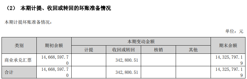 商業(yè)承兌匯票計提壞賬準備338,777.83元。