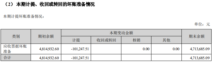 應收票據(jù)壞賬準備期末余額為4,713,685.09元。