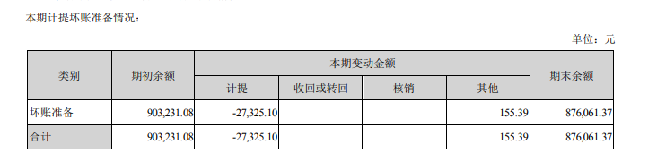 應收票據(jù)壞賬準備期末余額為876,061.37元。
