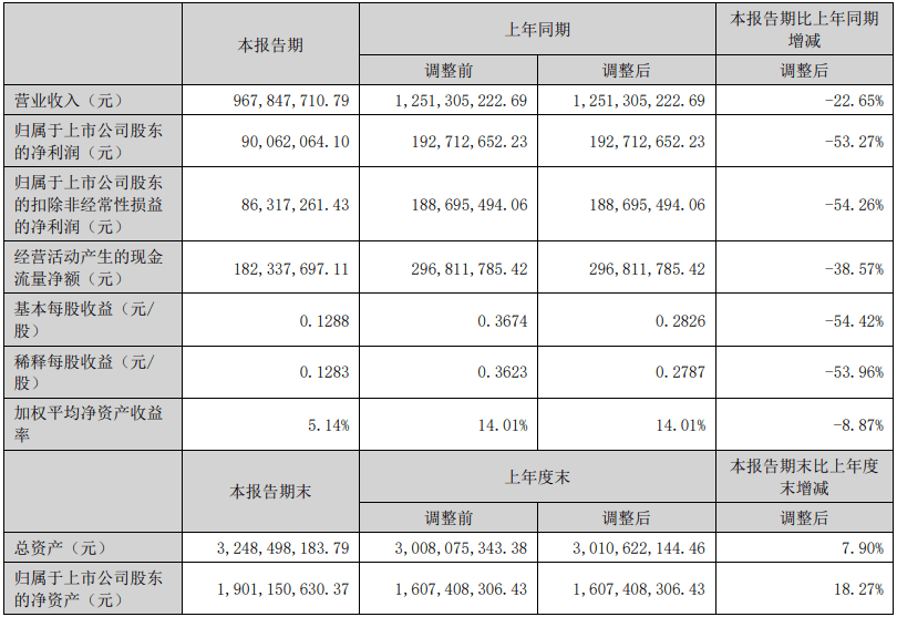 近日,美聯新材(或稱公司)發布2023年半年度業績報告。公告顯示美聯新材2023年上半年營業收入約9.68億元,同比減少22.65%;歸屬于上市公司股東的凈利潤約9006萬元,同比減少53.27%;基本每股收益0.1288元,同比減少54.42%。