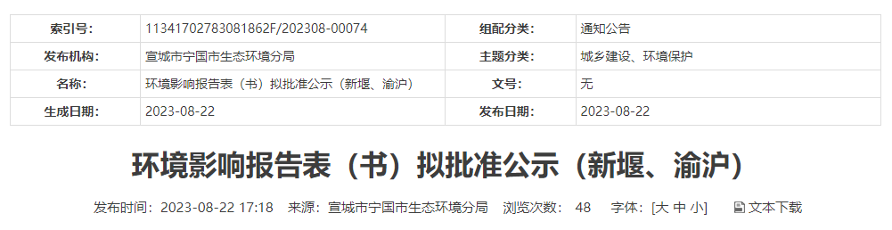近日,宣城市寧國市生態環境分局對安徽渝滬電子材料有限公司環氧電子灌封料、環氧固化劑生產項目環境影響報告書進行了擬批準公示。