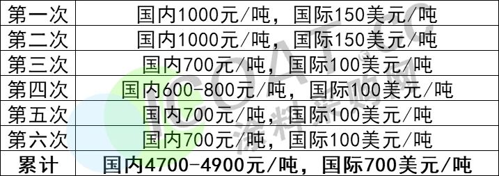 2023年以來,鈦白粉行業(yè)已經(jīng)開啟了5輪漲價(jià),都是由龍頭企業(yè)——龍佰集團(tuán)打響“第一槍”。龍佰集團(tuán)分別在1月31日、2月28日、4月11日,7月25日、8月24日宣布漲價(jià),加上本次漲價(jià),鈦白粉行業(yè)已經(jīng)迎來第六輪漲價(jià),龍佰集團(tuán)國(guó)內(nèi)累計(jì)上漲4700-4900元/噸,海外累計(jì)調(diào)漲700美元/噸。