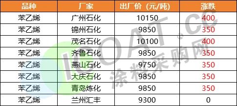 9月以來,苯乙烯漲超1000元/噸,期貨市場日內(nèi)大漲3.45%,多家化工企業(yè)苯乙烯出廠價(jià)大漲350-400元/噸,廣州石化和茂名石化出廠價(jià)已漲破10000元/噸。