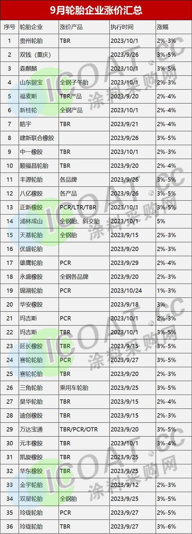 近期,40多家輪胎企業(yè)發(fā)布漲價(jià)通知,其中有針對(duì)全鋼胎的,也有針對(duì)半鋼胎的。正新、瑪吉斯、賽輪、玲瓏等企業(yè)更是先后發(fā)布多張漲價(jià)通知,對(duì)多品牌、多品類產(chǎn)品漲價(jià),漲幅在3%-5%左右。