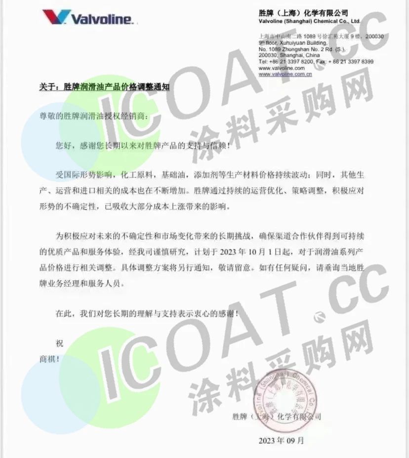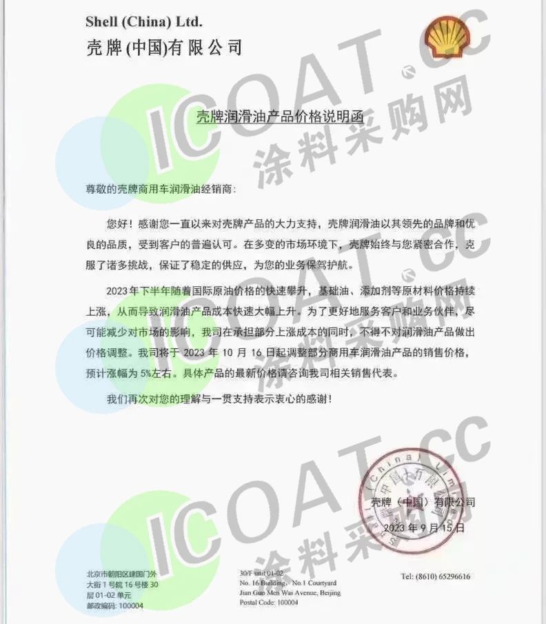 近日,勝牌、殼牌和突破潤滑油發(fā)布了關(guān)于調(diào)整潤滑油產(chǎn)品價(jià)格通告,宣布對(duì)產(chǎn)品價(jià)格進(jìn)行適度上調(diào),漲幅為5%左右。