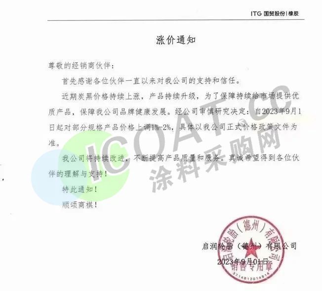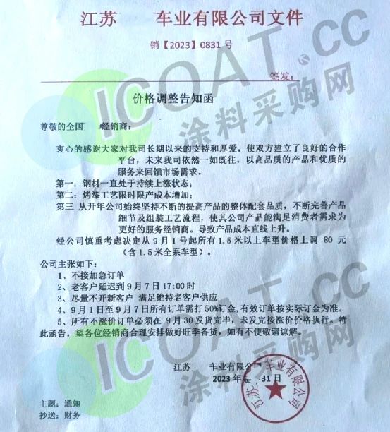 泉州市冠興環(huán)保科技:從2023年9月13日20:00訂單起,產(chǎn)品價(jià)格在原有價(jià)格基礎(chǔ)上上調(diào)3%。