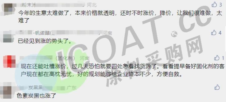 不少人表示,這樣的漲價(jià)全靠人工推升,不會(huì)起到什么作用。但按照目前的情況來看,多個(gè)行業(yè)生產(chǎn)商滿產(chǎn)滿銷,即便是加班加點(diǎn)也沒能阻擋排隊(duì)的陣勢,隨之而來的就是更高的要求。據(jù)涂料采購網(wǎng)了解,部分企業(yè)提出,不接受鎖定價(jià)格的訂單,超過三天交期的訂單為無效訂單。只接受正常交貨訂單,不再接受客戶15天以上寄單分批生產(chǎn)、“點(diǎn)菜式”交貨或待通知送貨訂單;不接受惡意超量下單并取消所有特價(jià)優(yōu)惠條件。對(duì)于各種大宗商品漲價(jià)以及各種“不平等”的要求,部分網(wǎng)友也坐不住了,直呼太難了,本來價(jià)格就透明,還時(shí)不時(shí)漲價(jià),真是生意難做。