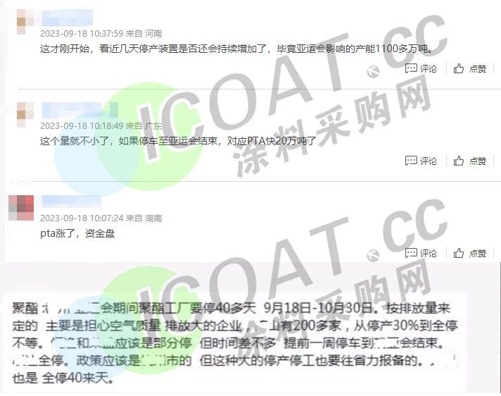 而在此前,化工人的朋友圈就已有傳言,稱近兩個(gè)月聚酯工廠要停產(chǎn)40多天,涉及企業(yè)200多家,也有網(wǎng)友表示,這才剛剛開始,近幾天停產(chǎn)裝置還會(huì)增加,影響的產(chǎn)能合計(jì)約1100多萬噸,對應(yīng)的上游PTA也有將近20萬噸左右。更有人猜測,此前聚酯產(chǎn)業(yè)鏈的高開工率就是為了近期的降負(fù)荷做準(zhǔn)備的,預(yù)計(jì)將持續(xù)到10月末左右,貫穿整個(gè)“銀十”旺季。
