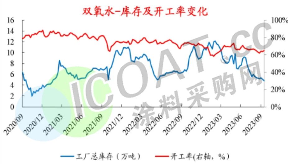 受突發(fā)事件影響,全國雙氧水安全生產(chǎn)檢查或?qū)⒃俣融厙?yán),市場貨源或仍然偏緊。岳陽中順停車檢修,河南心連心停車檢修,樂山福華停車檢修,河南佰利聯(lián)停車檢修,江西蘭太停車檢修。截至9月15日,雙氧水開工率為64.91%,庫存為4.83萬噸,10日內(nèi)下降22%。截至9月15日,雙氧水價(jià)格為1,923元/噸,較2023年6月初上漲148%。