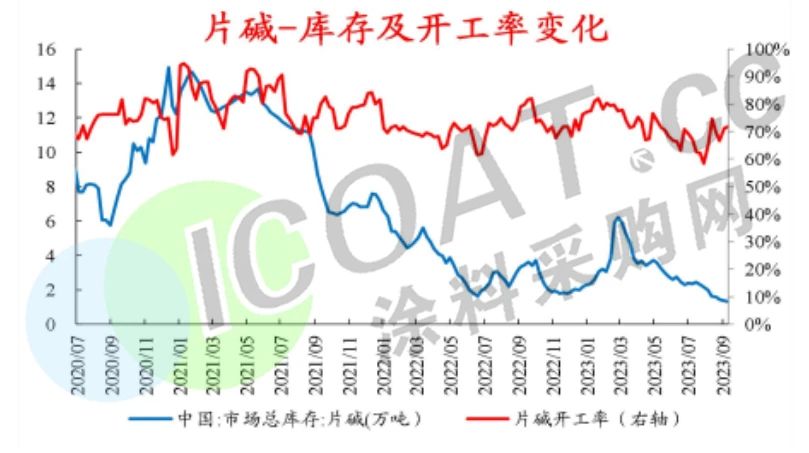本周片堿庫存持續(xù)低位,新疆地區(qū)個(gè)別主流堿廠片堿生產(chǎn)裝置仍處于檢修期,且其自身有大量預(yù)售訂單交付中,片堿現(xiàn)貨貨源供應(yīng)緊張。截至9月15日,片堿開工率為71.61%,處于2020年以來最低值。10月份包括山東、河北及天津等地區(qū)仍有部分氯堿企業(yè)安排停車檢修,燒堿供應(yīng)量仍有減少預(yù)期。