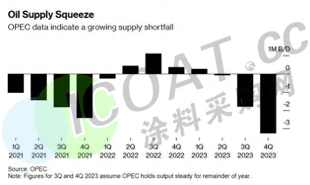 由于沙特宣布將自愿減產(chǎn)100萬桶/日石油的措施延長至12月底,以及俄羅斯將30萬桶/日的出口削減量延長至12月底,OPEC公布的最新月度報(bào)告預(yù)計(jì),今年四季度全球原油市場將面臨超過300萬桶/日的供應(yīng)短缺,這可能是至少自2007年以來最大的供應(yīng)赤字,這可能是十多年來的最大短缺。