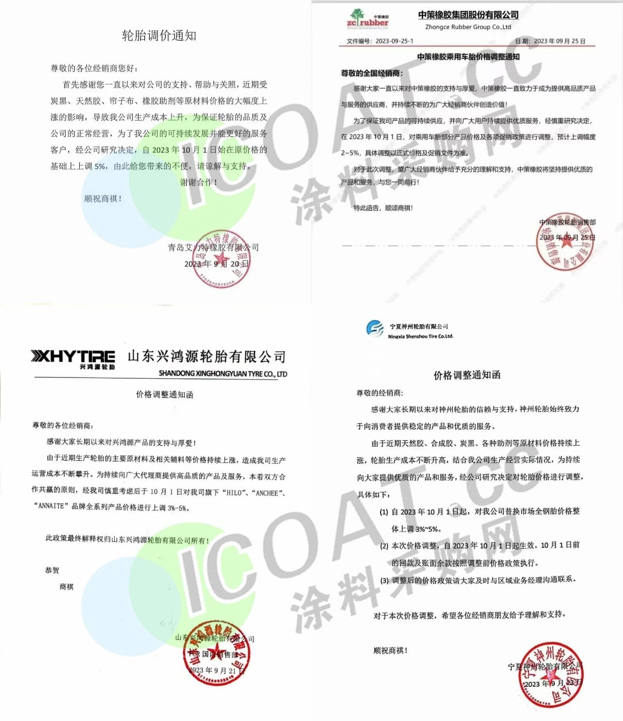 濰坊市華東橡膠:10月1日起,針對華東橡膠國內替換市場的TBR所有品牌全系產品進行價格上調3%。