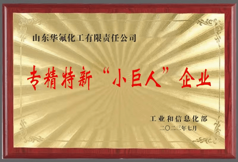 創新驅動發展,科技傳遞動力。近日,山東華氟化工有限責任公司(以下簡稱“華氟化工”)獲得了工信部認定的“專精特新”小巨人企業稱號,這份榮譽是對華氟化工擁有較強技術實力的有力證明。