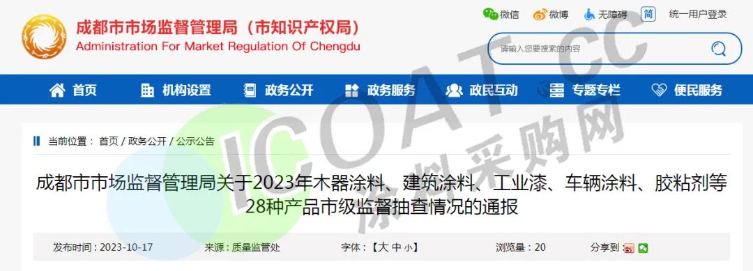 近日,四川省成都市市場監督管理局網站通報2023年木器涂料、建筑涂料、工業漆、車輛涂料等28種產品市級監督抽查情況。抽查產品98批次,其中生產領域37批次、流通領域61批次,不合格項目主要集中在VOC含量、耐洗刷性、重金屬含量(限色漆、粉末涂料、醇酸清漆)、不揮發物(含量)、二氯甲烷,1,2-二氯乙烷,1,1,2-三氯乙烷,三氯乙烯等。