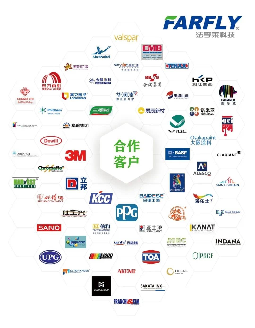 正是由于多種產品的智能化,能夠幫助越來越多的涂料化工行業解決問題,法孚萊與三棵樹、東方雨虹、金陵涂料、華潤漆等國內知名企業,阿克蘇諾貝爾、威士伯、立邦、PPG等外資龍頭企業,以及眾多500強企業建立了長期穩定的合作關系,客戶覆蓋全球100多個國家,為全球提供超20000多臺設備,服務于全球4000多家企業,出口額穩居行業領先地位。