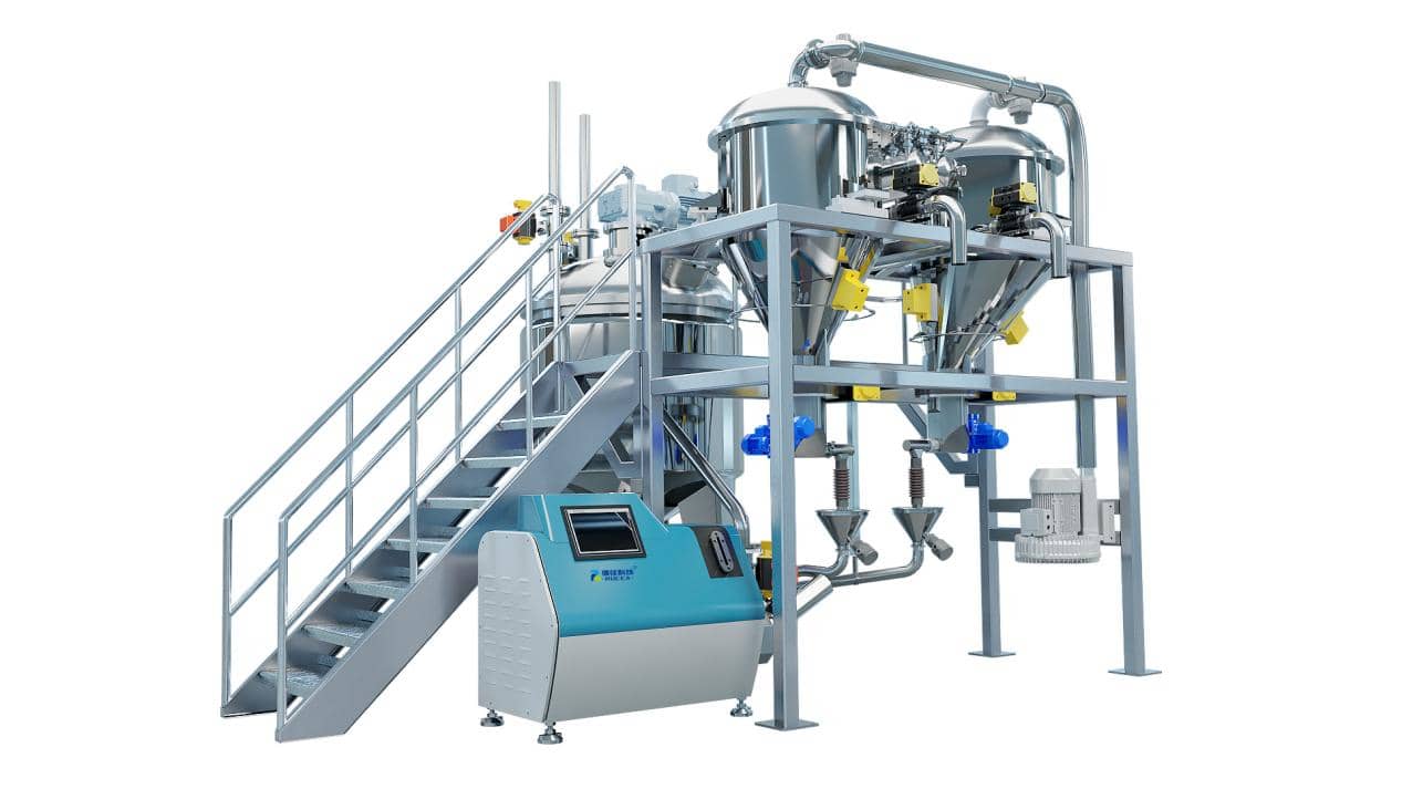 該分散機投入的漿料能夠瞬間潤濕分散,即使是難以潤濕,粘或灰塵的物料,也不會產生粉末揚塵,再加上安裝了防塵清潔過程感應設施,生產過程中能夠真正實現真空無塵吸料,極大地提升了生產過程的清潔度。且產出的粉末不與容器或安裝部件粘接,出料快速、可循環處理物料。