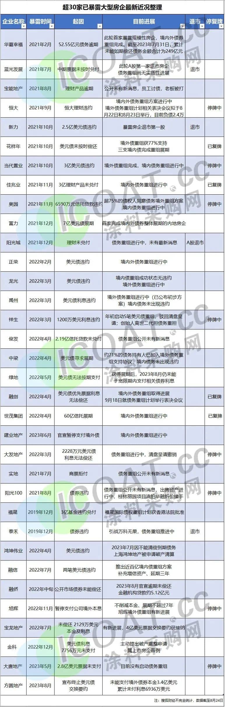 隨著行業管控這幾年的成效顯現,早期一批高周轉,高杠桿發展邏輯的民企相繼爆雷,TOP100房企超過一半已經爆雷,細數這幾十家爆雷房企,各有各的發展歷程和特點,但大部分還是因為高杠桿的運作方式,最后在資金鏈斷裂之下官宣違約。