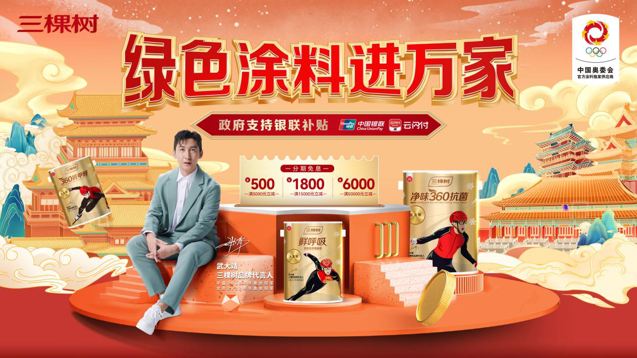 除此之外,三棵樹為真正全面讓利消費者,以最高的性價比助力打造綠色健康人居,與中國銀聯(lián)共同推出的滿額立減活動。即使用銀聯(lián)云閃付APP進行支付,即可享受500元、1800元、6000元的滿額立減活動,同時還推出了惠民套餐與立減優(yōu)惠均能夠疊加使用。在“天天雙十一”活動中,三棵樹還將繼續(xù)攜手銀聯(lián),以大額補貼讓利消費者。三棵樹開展鉅惠補貼行動的初心,也是長期以消費者為中心,切實希望助力國人打造健康中國家,積極推動健康戰(zhàn)略的迭代創(chuàng)新與綠色家居行業(yè)轉(zhuǎn)型升級,讓綠色的涂料走進千萬家,讓更多的國人用上健康中國漆。