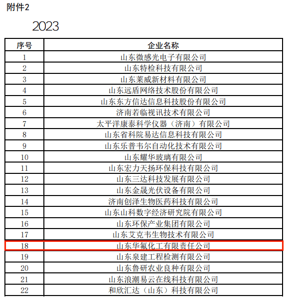 山東華氟化工有限責任公司(或稱華氟化工)繼2022年度獲得濟南市“瞪羚企業”之后,2023年度更上一層樓榮獲得山東省“瞪羚企業”。這既是對華氟化工創新驅動企業發展的成果認可,亦是對企業在創新之路上奮力向前的寫照。