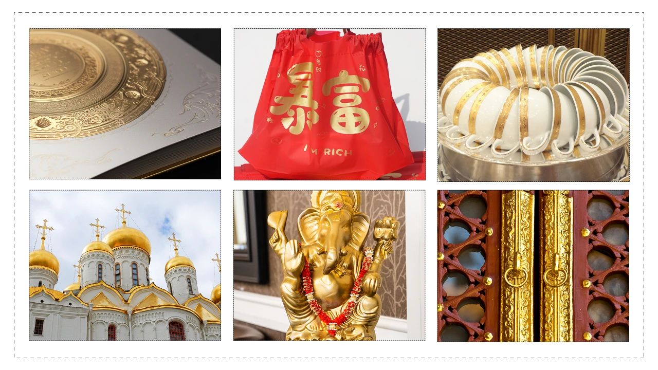 這些“金粉”真的是用金子做的嗎?實(shí)際上,“銅金粉”才是它真正的名字,銅金粉是以銅鋅合金為原料,經(jīng)過熔煉、噴粉、球磨、拋光氧化等工序加工而成的極細(xì)微鱗片狀金屬粉末。隨著銅金粉中銅和鋅的合金比例變化,可以呈現(xiàn)從青金色到紅金色再到紅銅色的變化。因此,被廣泛應(yīng)用于建筑裝飾、工藝品涂刷、書籍印刷、包裝品印刷等領(lǐng)域。